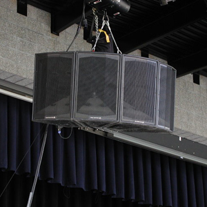 The medium size systems are our most varied, and can easily be adapted for size, type and venue of any show that falls between our small system and our large system. They are usually packaged around our Roland digital m-400 mixing console. The digital allows us to be very versatile with minimal equipment. The board can function 16-40 channels and 10 sends depending on what is required by the show. We also have 10 analog boards that can be used instead of the Roland digital or can be used as a monitor split. Along with the built in digital packs we have four different rack mounted FX/dynamics packages. Speakers can be any shown on this site or chosen from our older systems. |